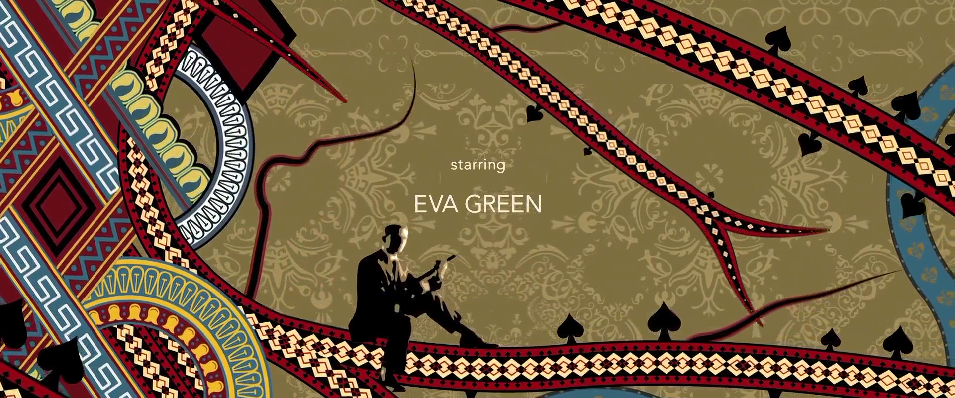 총열 시퀀스는 살인 면허를 처음 발급 받는 편인 만큼 살인 장면과 자연스레 이어진다. 그리고 제목과 주 무대가 카지노인 만큼 포커 문양이 오프닝 시퀀스에 활용됐다. 특이한 점은 <Dr.No>와 <퀀텀 오브 솔러스>, <스펙터> 모두 오프닝 시퀀스에 여성이 등장하나 <카지노 로얄>에서 만큼은 여성이 등장하지 않는다는 것. 제임스 본드의 첫 사랑 베스퍼 린드를 다루고 있는 편이기 때문인 것 같다. 그리고 에바 그린을 소개할 때 포커 카드 테두리으로 스펙터를 상징하는 문어 다리를 표현했다. 그가 스펙터의 이중 첩자임을 감안했을 때 인상적인 장면이다. 또한 하트 7로 007을 표현해 제임스 본드가 사랑에 빠짐을 암시하고, 본드의 몸에 총알이 꽂히고 돈다발이 튀어나오는 장면으로 이 영화의 결말 부분을 떠올리게 만든다.