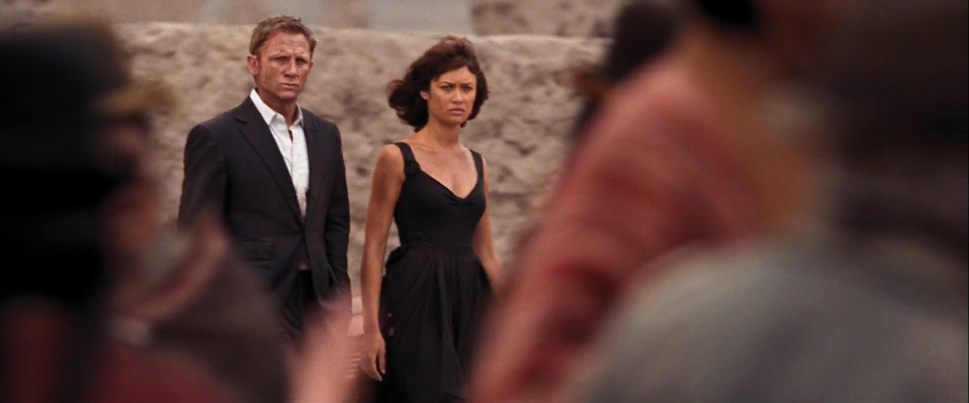 전작 <카지노 로얄>과 비교했을 때 상당히 많은 추격씬과 싸움이 등장한다. 자동차, 비행기, 보트를 이용해 육해공을 누비고, 지하에서 추격하고 사막 호텔에서 싸우는데 심지어 이 장면들은 평행 편집으로 이루어진다. 박진감을 강조하기 위해 짧은 쇼트가 난무하고 핸드 헬드 촬영 기법을 사용한 듯 보트, 비행기, 자동차의 진동 및 온갖 터지는 사물들로 인해