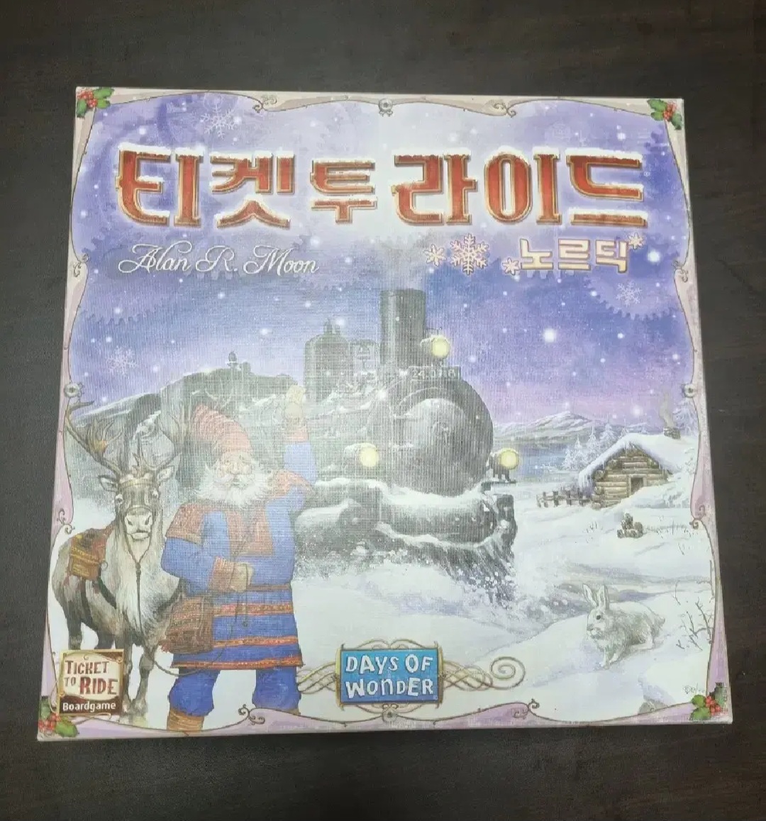 눈 내리는 북유럽을 배경으로 한 티켓 투 라이드 2-3인용 버전입니다. 자기 차례가 되면 3가지 행동이 가능합니다. 기차 카드를 뽑거나 기차 노선을 연결하거나 목적지 카드를 가져올 수 있습니다. 기차 카드는 오픈되어 있는 것과 더미 중 원하는 곳에서 2장을 가져옵니다. 기차 노선 연결은 같은 색 열차 카드를 노선 칸 수만큼 제출해야 합니다. 목적지 카드에 나와 있는 두 도시를 이으면 보너스 점수를 줍니다. 또한 기본적으로 노선을 연결할 때마다 추가 점수를 주는데, 긴 노선일수록 점수 증가폭이 큽니다.