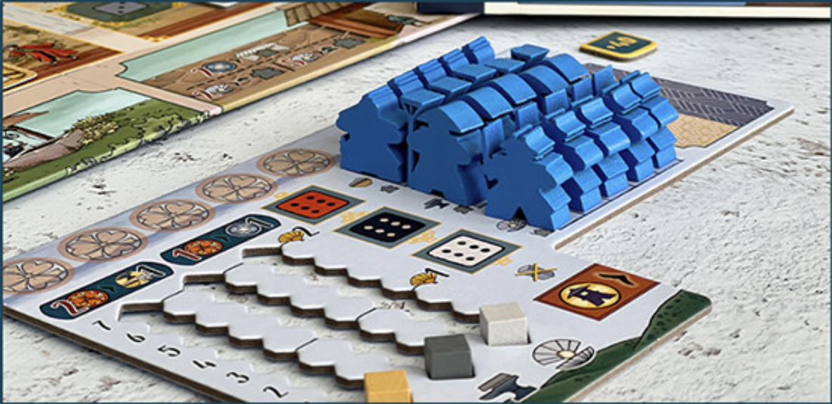 3색 주사위 뒤쪽에 깃발이 있으면 개인 영토판에 주사위를 1개 한 개 놓는 것과 똑같은 효과를 발동합니다. 3색 주사위는 백로성 내부 주사위 칸 중 하나를 사용하는 것을 의미합니다.