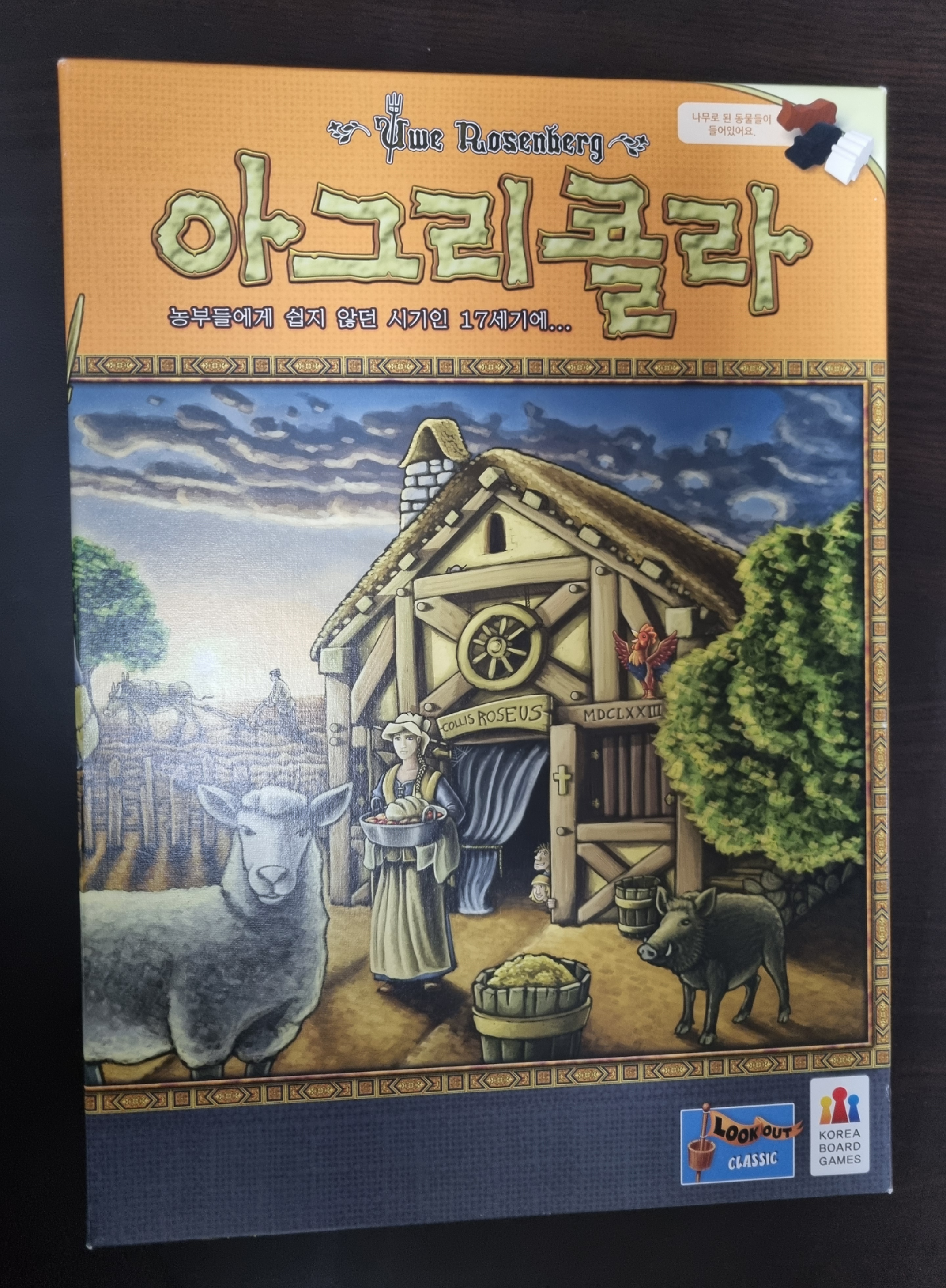 우베 작가의 1티어 게임을 꼽으면 오딘을 위하여와 함께 항상 꼽히는 아그리콜라의 개정판입니다. 구판과의 차이점이라면 우선 박스 외관으로 구분할 수 있습니다. 신판은 표지 그림이 살짝 바뀌었고 우측 위 모서리에 "나무로 된 동물들이 들어있어요."라는 문구가 있습니다. 가장 중요한 변화는 카드 밸런스 조정과 함께 직업 카드, 보조 설비 카드가 대폭 감소했습니다. 구판에선 직업 카드 169장, 보조 설비 카드 139장이었지만, 개정판에선 직업 카드 48장, 보조 설비 카드 48장이 되었습니다. 3분의 1로 줄은 것이죠. 시작할 때 받는 직업 카드 7장, 보조 설비 카드 7장으로 밭을 경작하고, 동물을 키우면서 집을 확장해 나가는 게임이다 보니 카드 수량이 많을수록 리플레이성과 재미가 올라갑니다. 그래서 사람에 따라 카드가 많은 구판을 선호하는 사람도 있습니다. 하지만, 아그리콜라 개정판엔 확장 덱 A, B, C, D, E, CD가 있기 때문에 카드 수량 단점을 보완할 수 있습니다. 확장 덱마다 직업 카드 60장, 보조 설비 카드 60장이 들어 있습니다.
