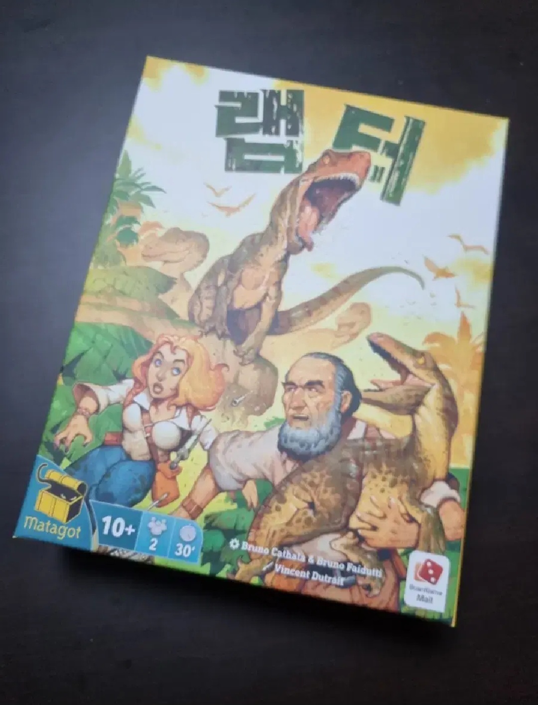 보편적으로 여자보다 남자들이 환장할만한 테마입니다. 저도 테마는 매우 만족했습니다만, 그 테마를 받쳐 줄 게임성이 아쉬워서 긴 고민 끝에 결국 방출했습니다. 대부분 게임이 허무하게 끝납니다. 숫자 카드 9장, 그리고 그 중 손에 3장만 들 수 있다는 점 때문에 전략적 선택지가 너무 적었습니다. 게다가 랩터는 매복과 감시, 과학자는 인원 보강 효과 말고는 그 카드 효과를 쓸만한 적절한 상황이 필요합니다. 그게 아니라면 효과를 얻어도 제대로 써먹지 못하고 낭비됩니다. 두 세판 해보면 상대를 바꿔도 게임 양상이 반복되는 인상을 받습니다.
