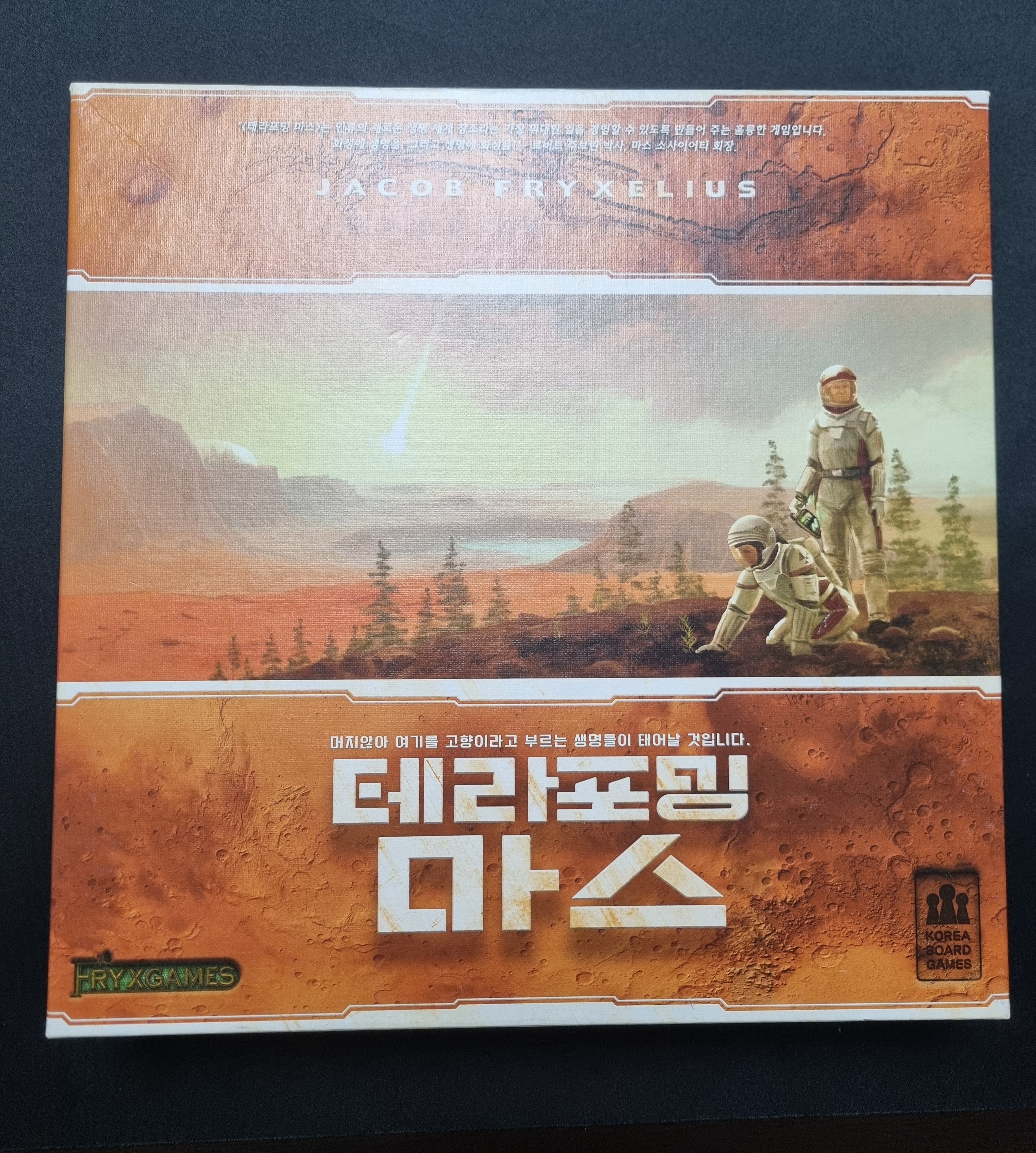 우주에서 화성을 테라포밍하는 테마가 아주 잘 살아있습니다. 카드 플레이만 놓고 보면 유로 게임처럼 자원 바꿔먹기 게임 같겠지만, 타일 놓기 덕분에 실제로 화성을 사람이 살기 좋은 땅으로 만드는 느낌이 듭니다. 웨이트 3점대부터는 유로 게임이 많아서 그런지 전략 게임 중에선 테마성이 높은 편이라고 느꼈습니다.