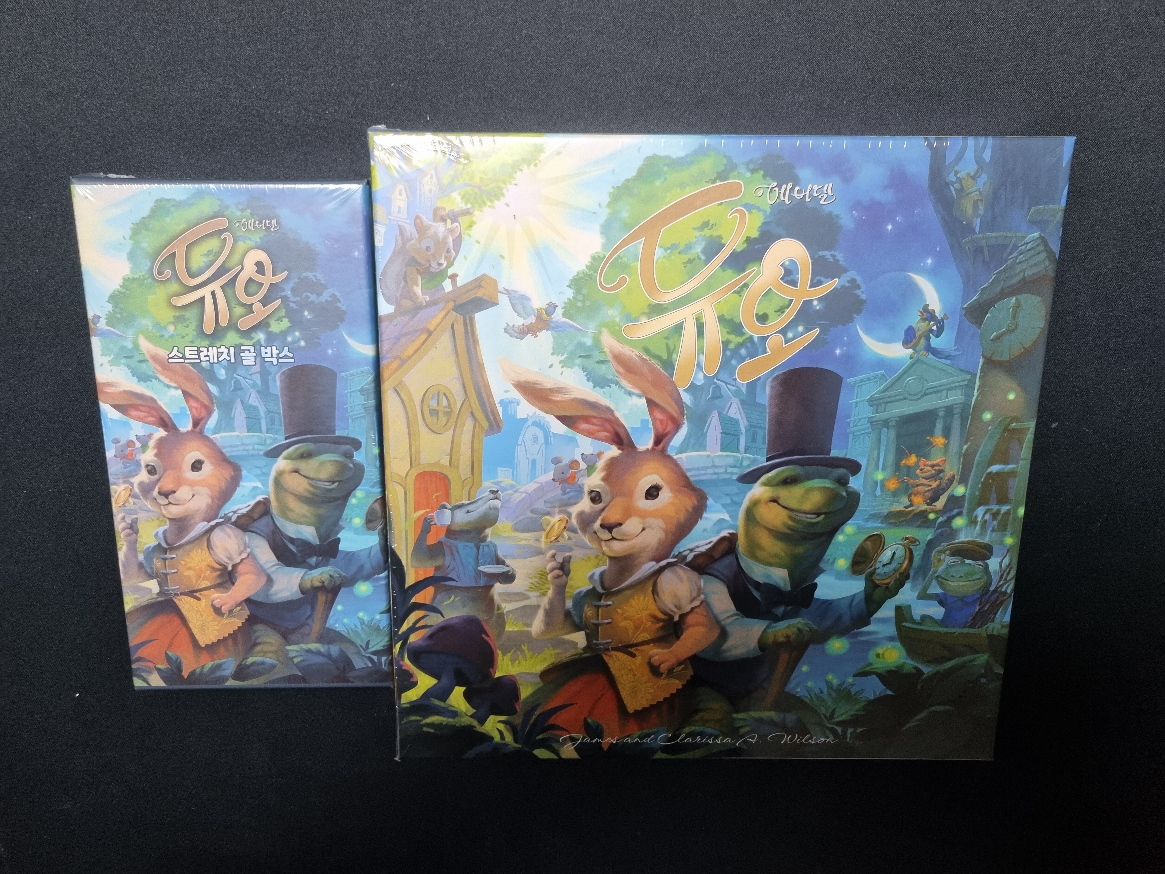 스트레치골 박스 아트 슬리브 동물&건물 카드 80장 +여분 5장 정도, 좋은 소식 카드 아트 슬리브 25장 + 여분 3장 정도, 참조 카드용 투명 슬리브 4장, 나무 해 토큰 1개, 나무 달 토큰 1개, 캠페인 점수 기록지 뭉치 1개. 메탈코인 45개.