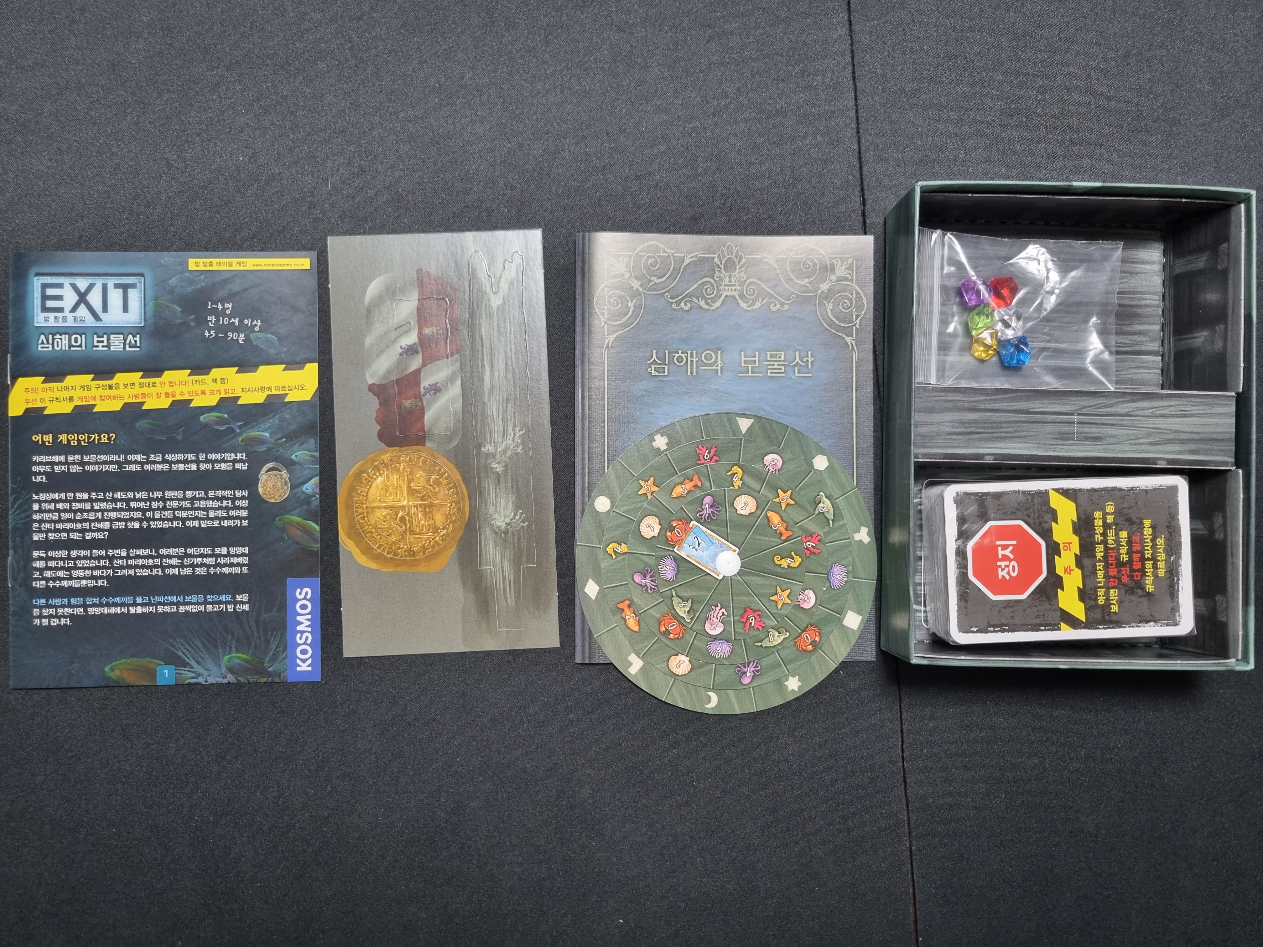 원조 방탈출 게임 엑시트 시리즈의 작품 중 하나입니다. 제가 해본 엑시트 시리즈 중 난이도가 제일 쉬웠습니다. 수수께끼를 풀어 숫자 3개를 암호판에 입력하면 해답 카드를 줍니다. 해답 카드는 다음 수수께끼로 이어집니다.
