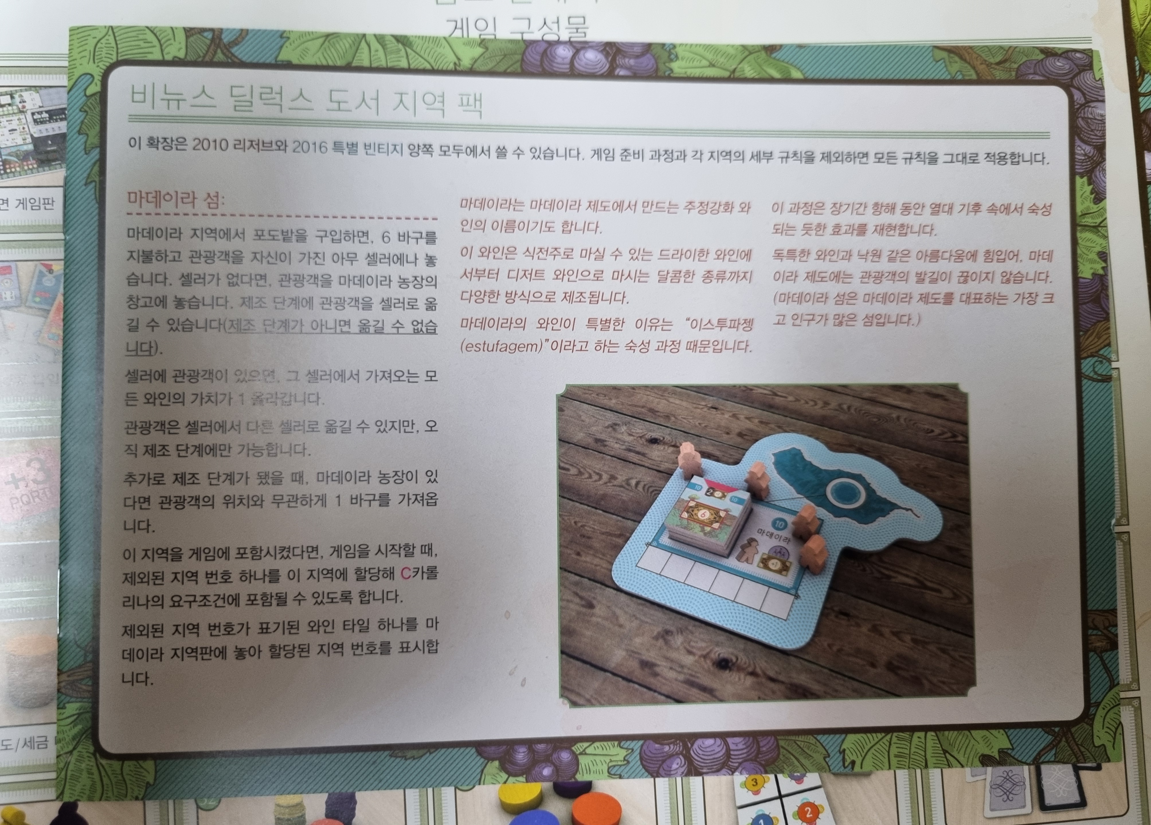 마데이라 확장 : 마데이라 섬 보드 1개, 포도밭 타일 4개와 목재 관광객 4개